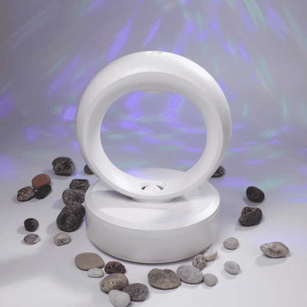 Oro drėkintuvas su antigravitacine iliuzija miegamajam su naktiniu šviesos šaltiniu.